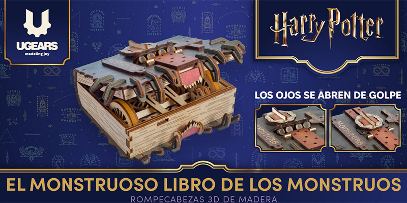 El Libro Monstruoso de los Monstruos de la colección oficial de Ugears inspirado en el universo de Harry Potter es mucho más que un puzzle 3D de madera: es una pieza mecánica que se mueve y sorprende desde el primer momento.